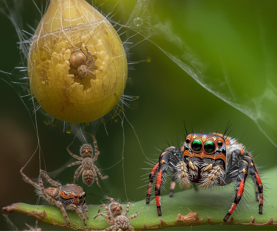 I have professional experience and expertise in observing the life cycle of the jumping spider, particularly in the Salticidae family. During the first stage, the female deposits eggs into a silk web or protected spot, forming an egg sac where they incubate and hatch. The baby jumping spiders, also called spiderlings, begin their early life, gradually learning to hunt and build small silk webs, which is essential for proper spider development. As they grow, the spiderlings progress through stages of spider maturation, finally becoming a fully adult jumping spider with behaviors and instincts known to their species. These stages remain similar across species but can slightly differ, showing how naturally jumping spider growth unfolds from baby to adult.